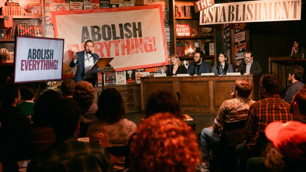 In “Abolish Everything,” which will be streamed exclusively on Nebula, a platform specializing in indie creators, a comedian called “Abolitionist” complains about wanting to be ostracized from society, while a hilarious panel titled “The Political Establishment” improvises a rebuttal on behalf of the status quo. Viewers crown an abolitionist champion each episode, then return to compete in the season finale.