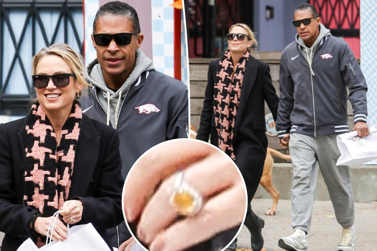Amy Robach and TJ Holmes were photographed walking in New York City on Wednesday wearing giant engagement rings. TheImageDirect.com