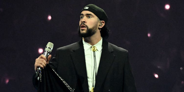 The week before the Super Bowl, Bunny made history at the Grammy Awards, where DeBÍ TiRAR MáS FOToS became the first all-Spanish album to win Album of the Year. At the show, the musician wore a diamond Cartier ring on his left ring finger, which prompted some questions about his relationship status.