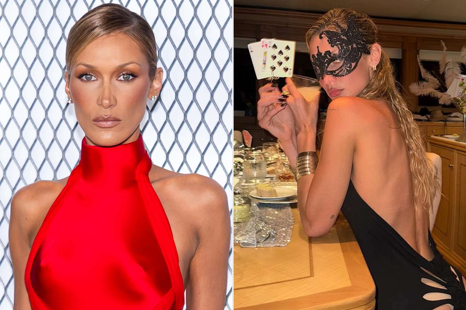 Hadid, 29, is seen wearing a butt-baring dress with a cutout in the back and a plunging back in an Instagram post on Friday, January 23. The Orebella founder paired her bold look with a lace masquerade mask, chunky silver cuff bracelet, and emerald-cut diamond earrings.