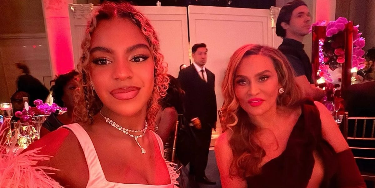 Blue Ivy Carter attended the Angel Ball at Cipriani Wall Street wearing a floor-length baby pink dress with feathered sleeves and diamond accessories. She attended the gala with her grandmother, Tina Knowles, who received the Philanthropy Award. Beyoncé shared an intimate look at the pair from inside the gala.