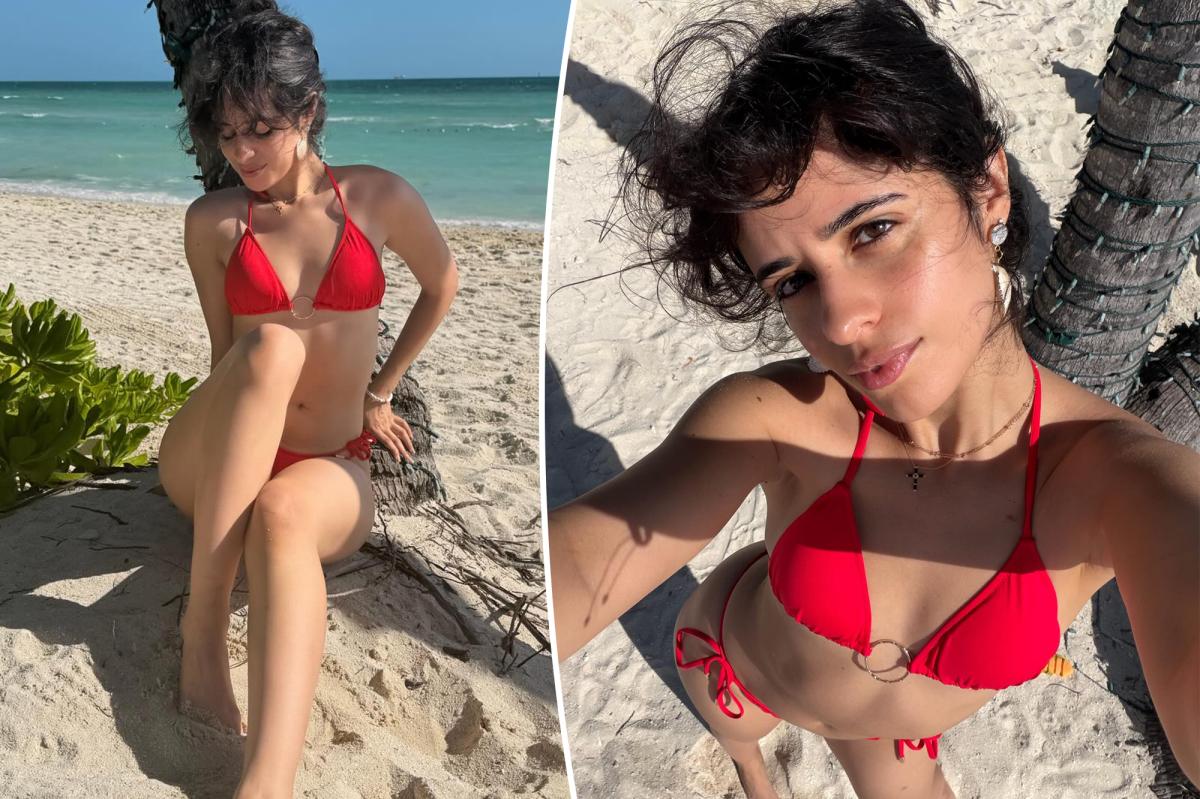 Camila Cabello looks sexy in red string bikini on beach vacation