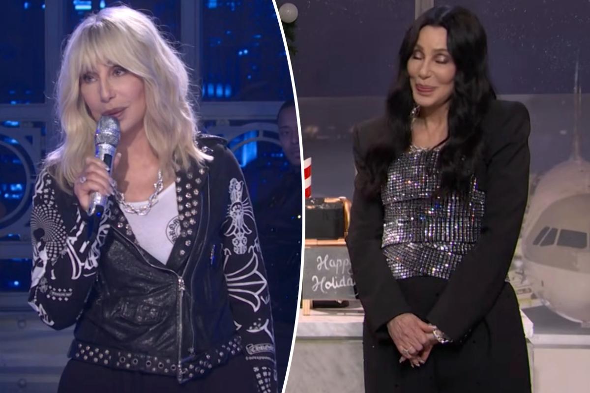 Cher rocks ‘n’ roll in leather jacket and blonde wig during ‘Saturday Night Live’ performance