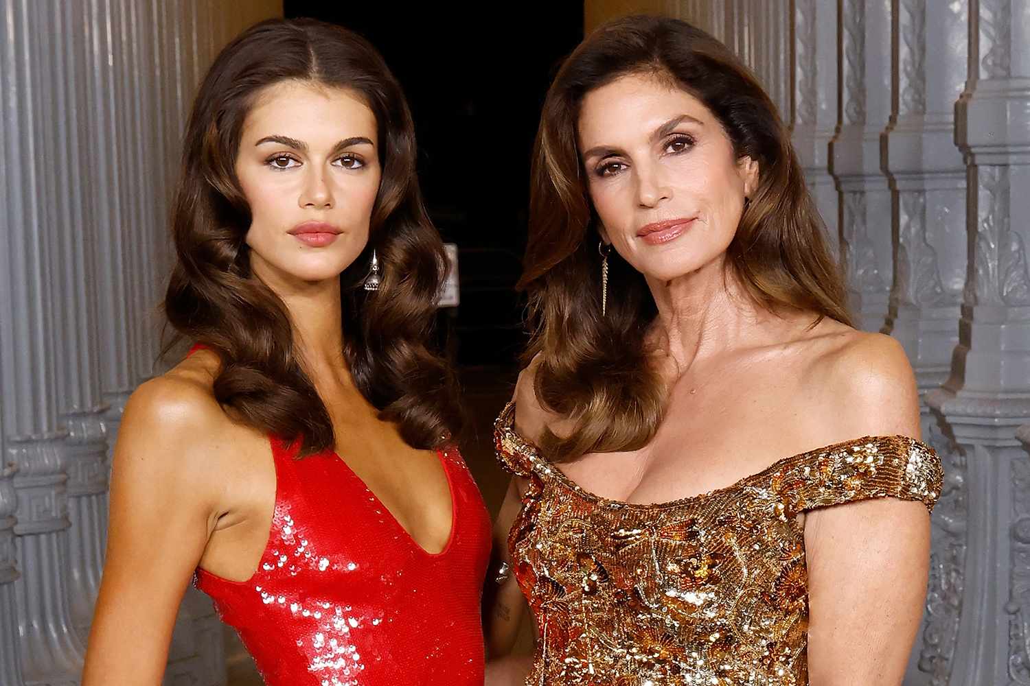 Mother-daughter duo Kaia Gerber and Cindy Crawford sparkle in sequined gowns at the Los Angeles County Museum of Art Art+Film Gala on Nov. 1.