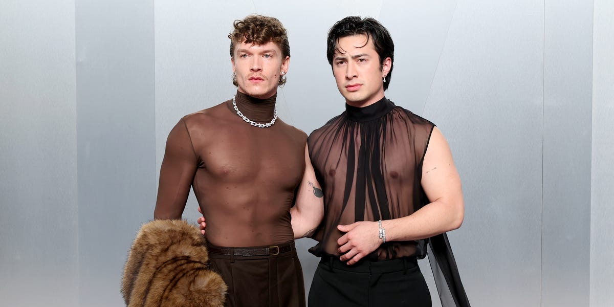 Connor Story and Hudson Williams match in sheer at the 2026 Vanity Fair Oscar Party