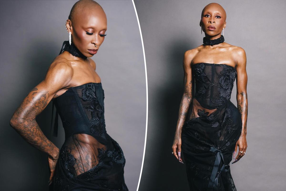 Cynthia Erivo put her body art on full display at the Singapore premiere of Wicked: For Good on Thursday, wearing a dramatic black Vivienne Westwood Couture dress with sheer cut-out panels and showing off her flower tassel tattoo on her lower back.