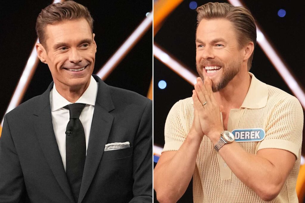 Ryan Seacrest and Derek Hough from “Celebrity Wheel of Fortune.”