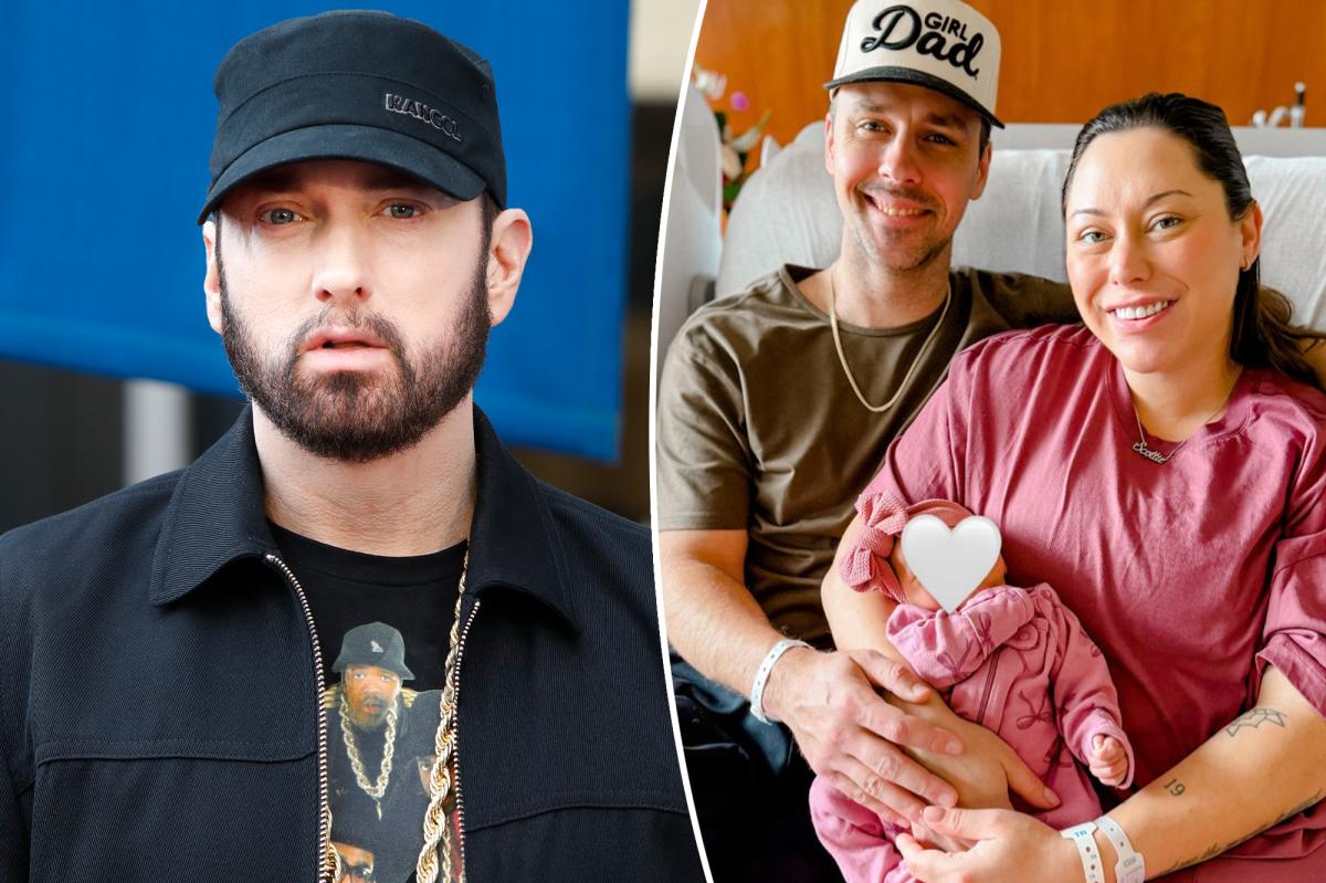 Eminem’s daughter Alaina Scott and her husband Matt Mueller gave birth to their first child, daughter Scottie Marie, on Tuesday.