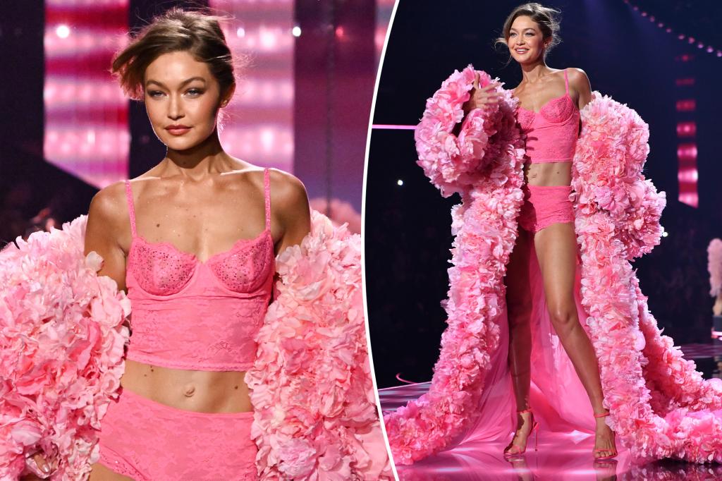 Hadid returned to the VS show after a six-year hiatus and opened the show last year wearing a pink silk romper and matching feathered wings. Looking back on 2024, the model said, “This was the first time I was asked to open a Victoria’s Secret fashion show. I’ll never forget it.”