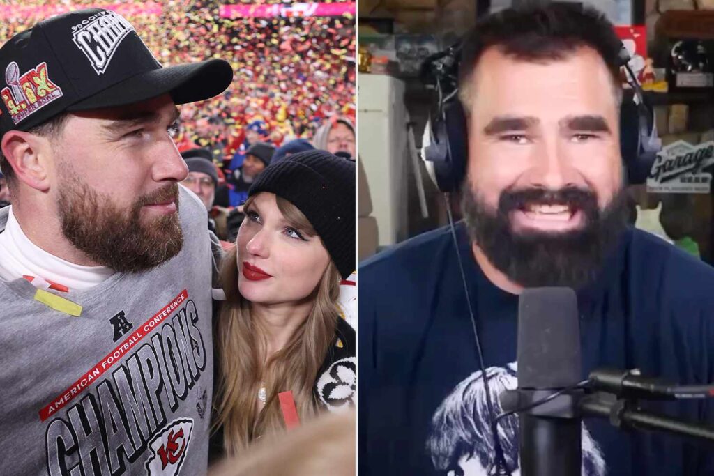 Jason hasn’t given up on his brother since Swift released the sexy song, which Travis admitted was “terrifying” for his father Ed Kelce to hear. Jason continues to tease the Chiefs star with questions such as, “Do you feel about the song ‘Wood’? I’m not sure, but do you think it’s cocky?” And he said, “This isn’t just a song. This is a very specific you.”