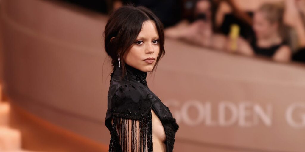Wednesday’s Jenna Ortega began the year with a Golden Globe nomination for her work on the show’s second season. The 23-year-old actress arrived at the ceremony in Los Angeles wearing a black dress with a dramatic cutout on the side. She accessorized with silver earrings and a ring. Ortega will receive the award tonight for Best Performance by a Female Actor in a Television Series, Musical or Comedy.