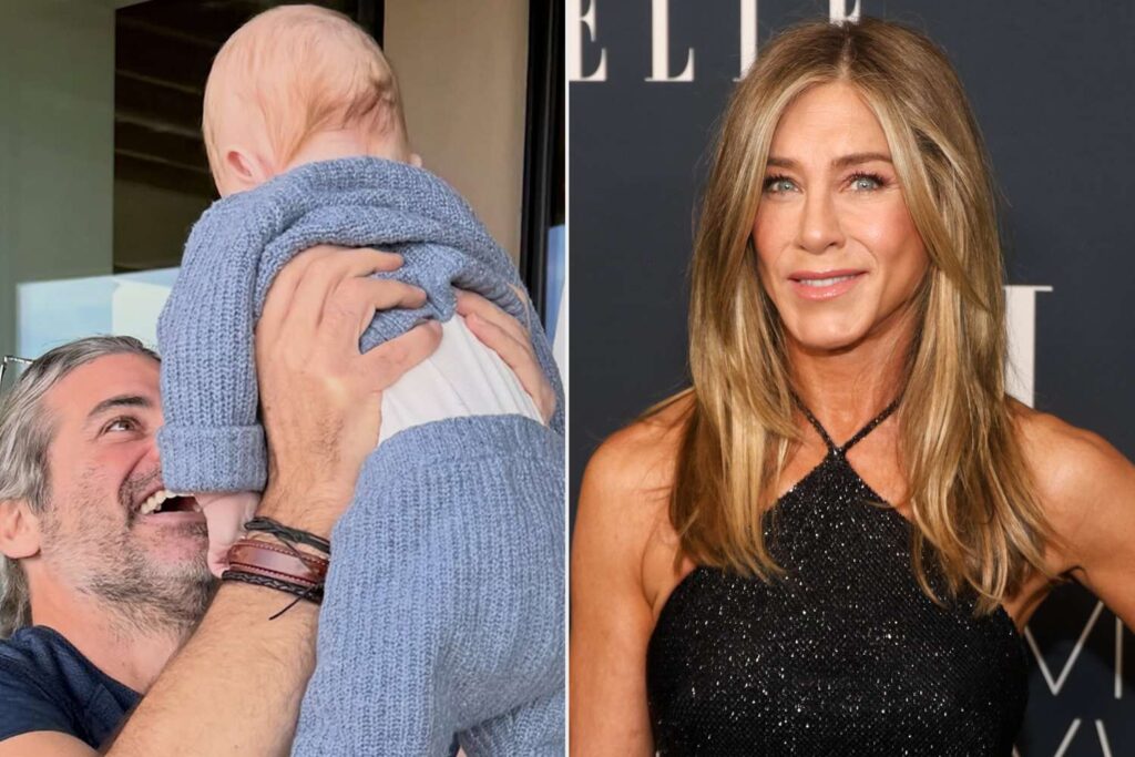 “Sending you love ❤️ Happy Holidays! 🎄🎁🐾,” Aniston captioned a photo of Curtis playing with puppies, friends and a baby.