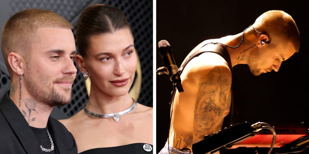 Justin Bieber apparently showed off Hailey Bieber’s new tattoo during his performance at the Grammy Awards.