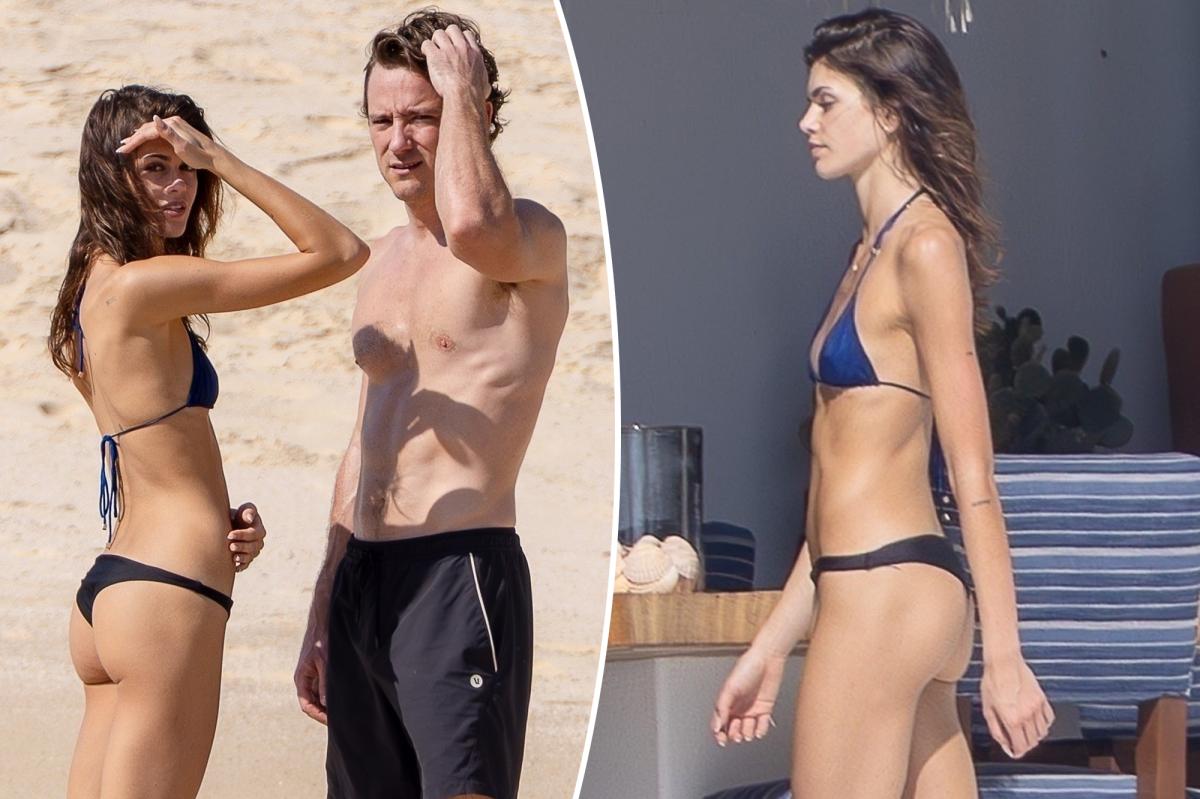 Kaia Gerber wears ill-fitting bikini with Louis Pullman in Mexico