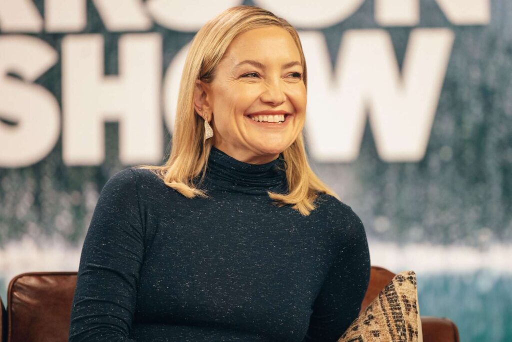 Kate Hudson wears a long denim skirt on ‘The Kelly Clarkson Show’
