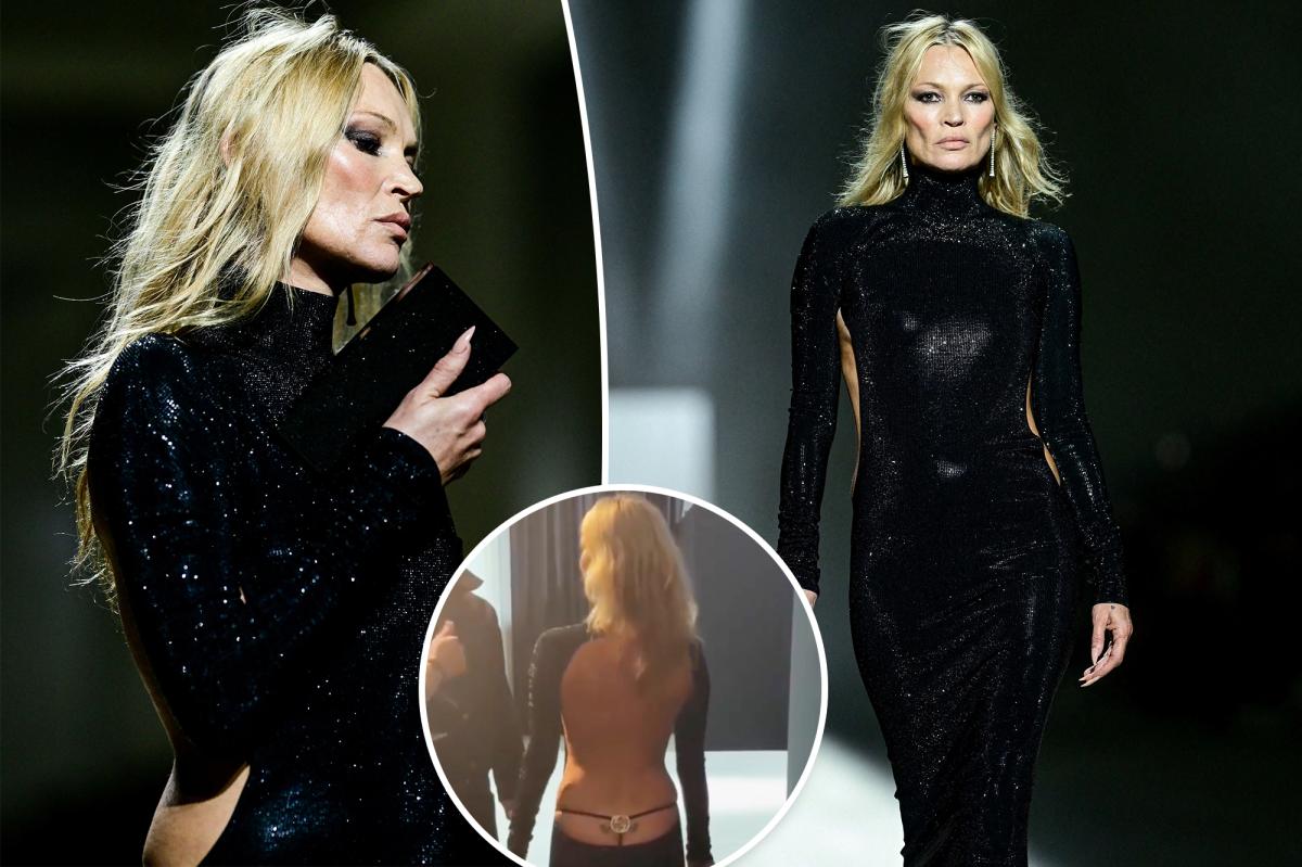Kate Moss closes Gucci runway show in peek-a-boo thong dress