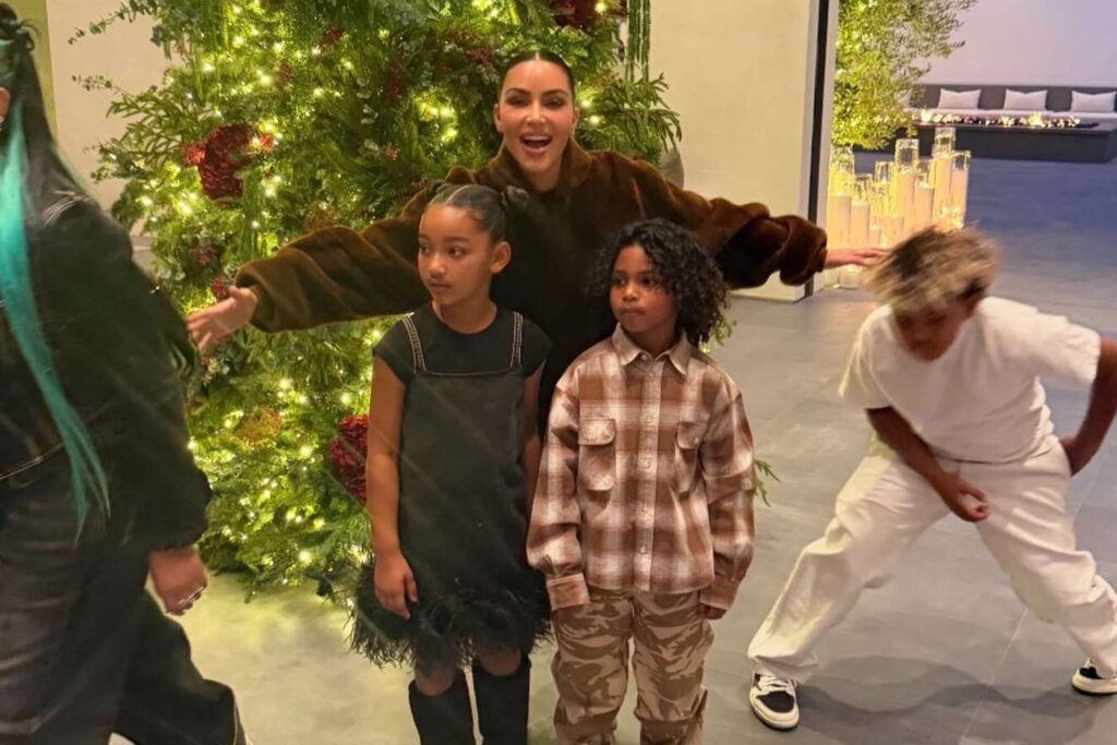 Kim Kardashian went all out to snap holiday photos with her four kids The All’s Fair actress is also a parent to ex-husband Kanye West and North, Saint, Chicago and Psalm Photos shared to social media showed an adorable but slightly chaotic moment as the family gathered together for a few holiday snaps.