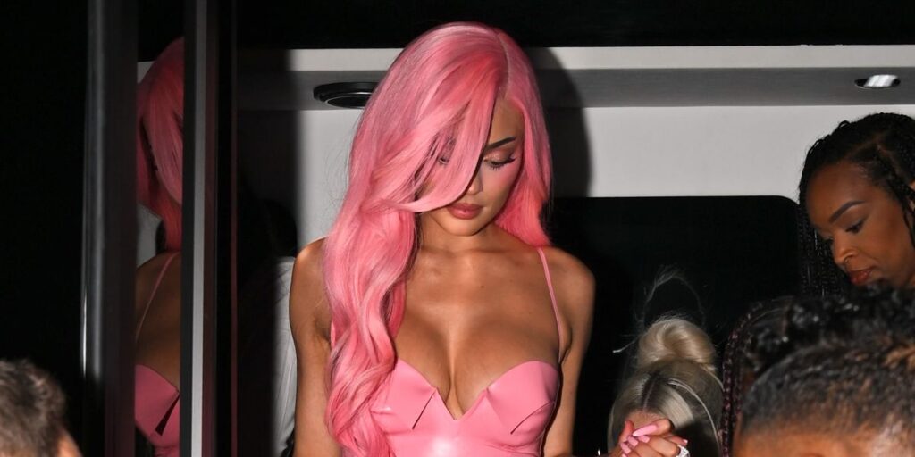 On Friday, Kylie Jenner hosted an epic Kylie Cosmetics party in Los Angeles wearing a skin-tight pink dress with a plunging neckline and spaghetti straps. The look was also an ode to Barbie and Kylie’s alter ego, King Kylie. The influencer, who was known for her colorful wigs when she was using her nickname, once again sported her long, pastel pink hair to match her dress. The party was to celebrate a new limited edition collection titled ‘King Kylie’.