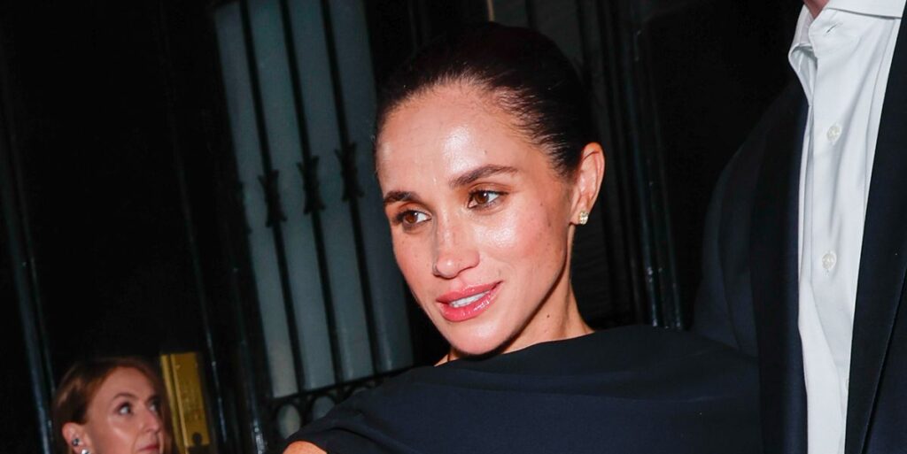 Home » Meghan Markle wears asymmetrical half cape black gown for Paris Fashion Week