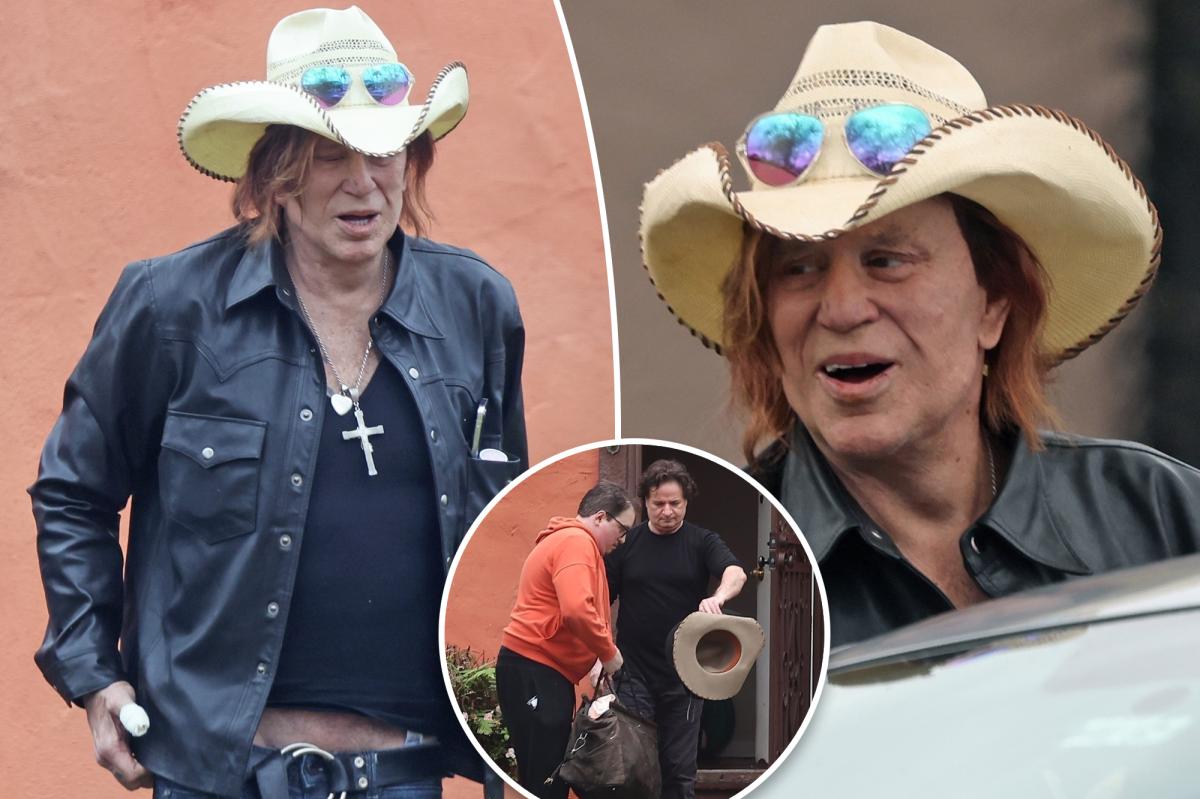 Rourke was seen loading his belongings into his car and leaving his rental home. back grid