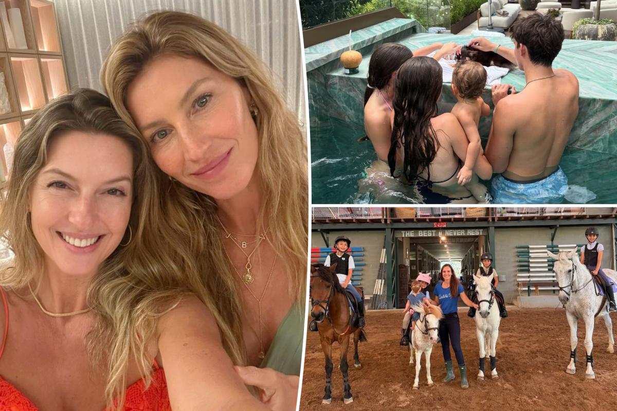 She also shared a photo of her two older children with ex-husband Tom Brady having fun in the pool with their new siblings. Instagram/Giselle