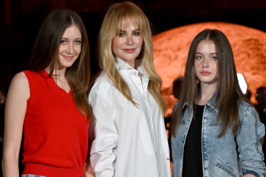 New Chanel ambassador Nicole Kidman is buttoned up with daughters Sunday Rose and Faith Margaret Kidman Urban on Oct. 6 during Paris Fashion Week.