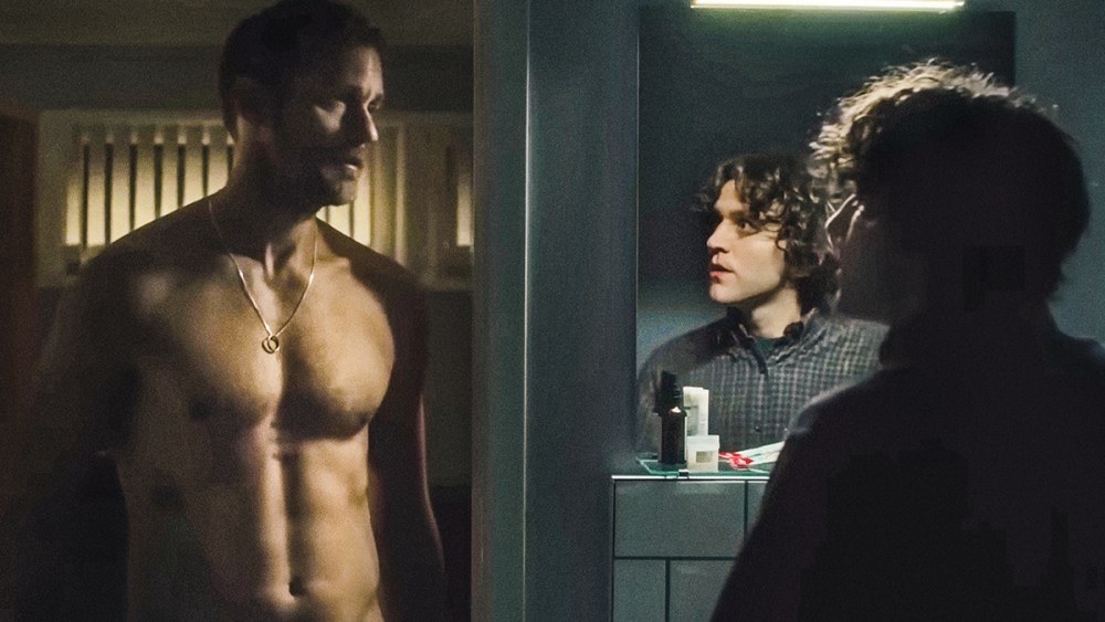 In a key early scene in the film, timid loner Colin (Harry Melling) has his first sexual encounter with burly biker Ray (Skarsgård) in a dark alley. But when a wide-eyed Colin kneels in front of him and Ray pulls down the zipper on his leather trousers, a decision was made in post-production not to show the shark, so to speak, says editor Gareth C. Scales.