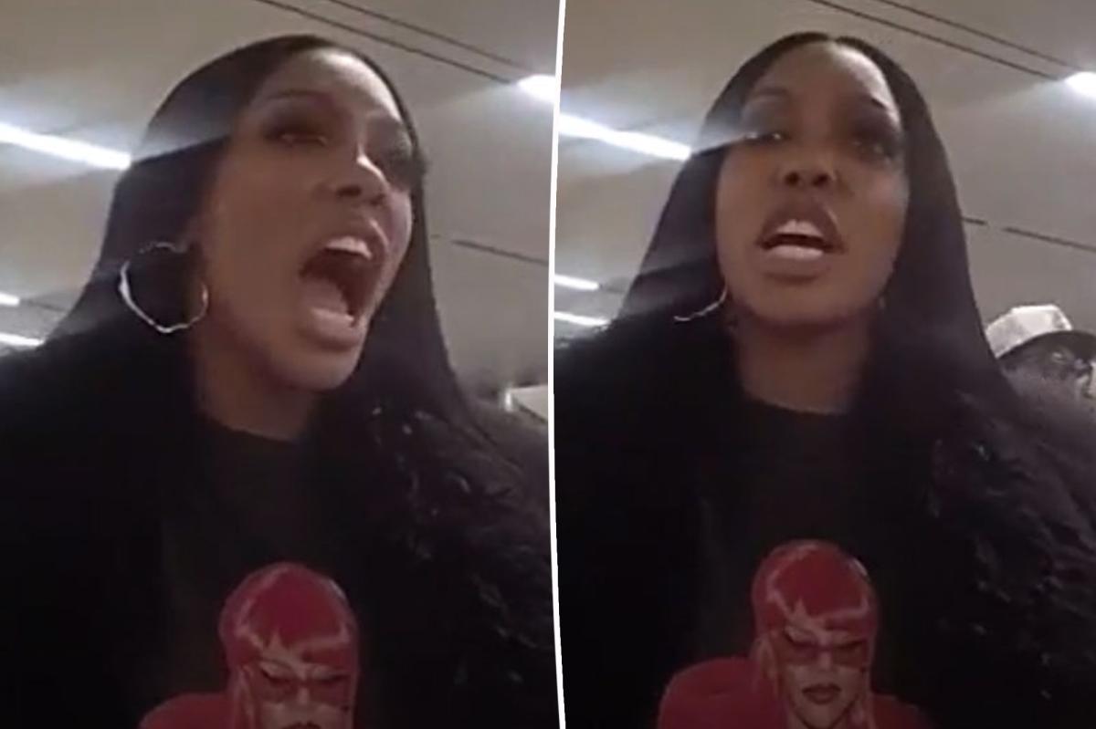 In the clip, the “Real Housewives of Atlanta” star claims that the incident started when another passenger sitting next to her on the plane called her a “bitch.”