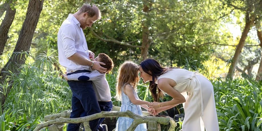 Prince Harry and Duchess Meghan shared a rare family Christmas photo with their children Archie and Lilibet on December 19th. The photo shows the family of four smiling and hugging each other on a pedestrian bridge outside in the sun. The Duke and Duchess of Sussex also released an end-of-the-year video for their nonprofit, newly rebranded as Archewell Philanthropies.