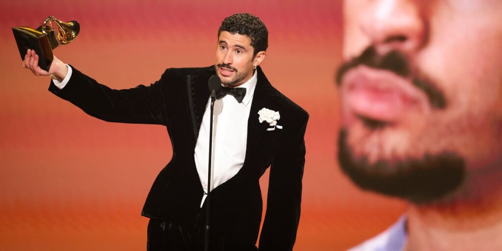 Even before winning the award, the Puerto Rican rapper was already making Grammy history. In the award ceremony’s 68-year history, Bad Bunny became the first Spanish-language artist to be nominated in the Album of the Year, Record of the Year, and Song of the Year categories simultaneously. The AOTY award makes DeBÍ TiRAR MáS FOToS the first all-Spanish album to win in that category.