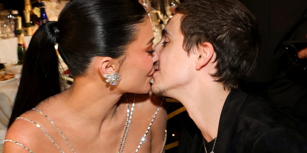 See photos of Kylie Jenner and Timothée Chalamet kissing at the 2026 Golden Globe Awards