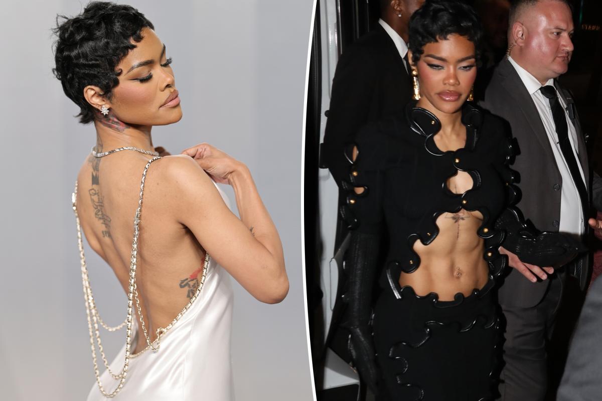 The open-back design showcases the actress’s tattoos on her spine and ribcage. Getty Images