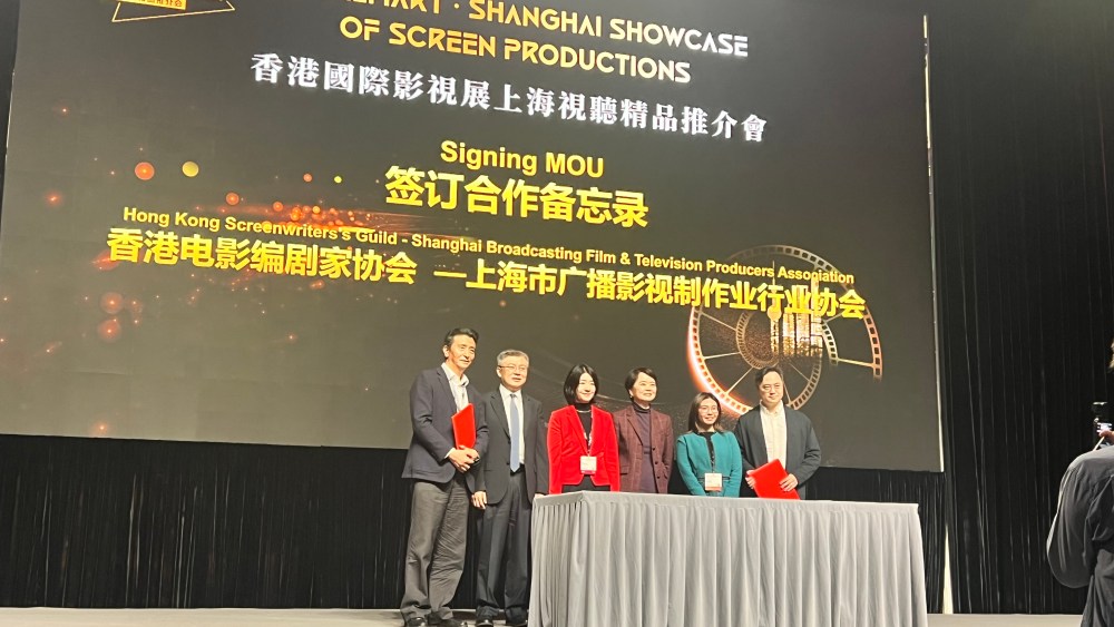 The Shanghai Broadcast Film and Television Producers Association and the Hong Kong Writers’ Guild officially signed an agreement to deepen cooperation at Filmart on March 19th.
