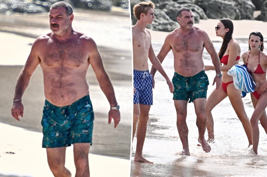 Shirtless Liev Schreiber shows off his fit physique in Barbados