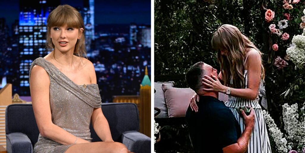 She then gave Fallon the backstory of Kelce’s surprise proposal. He transformed into a secret garden in his backyard, where he popped the question.