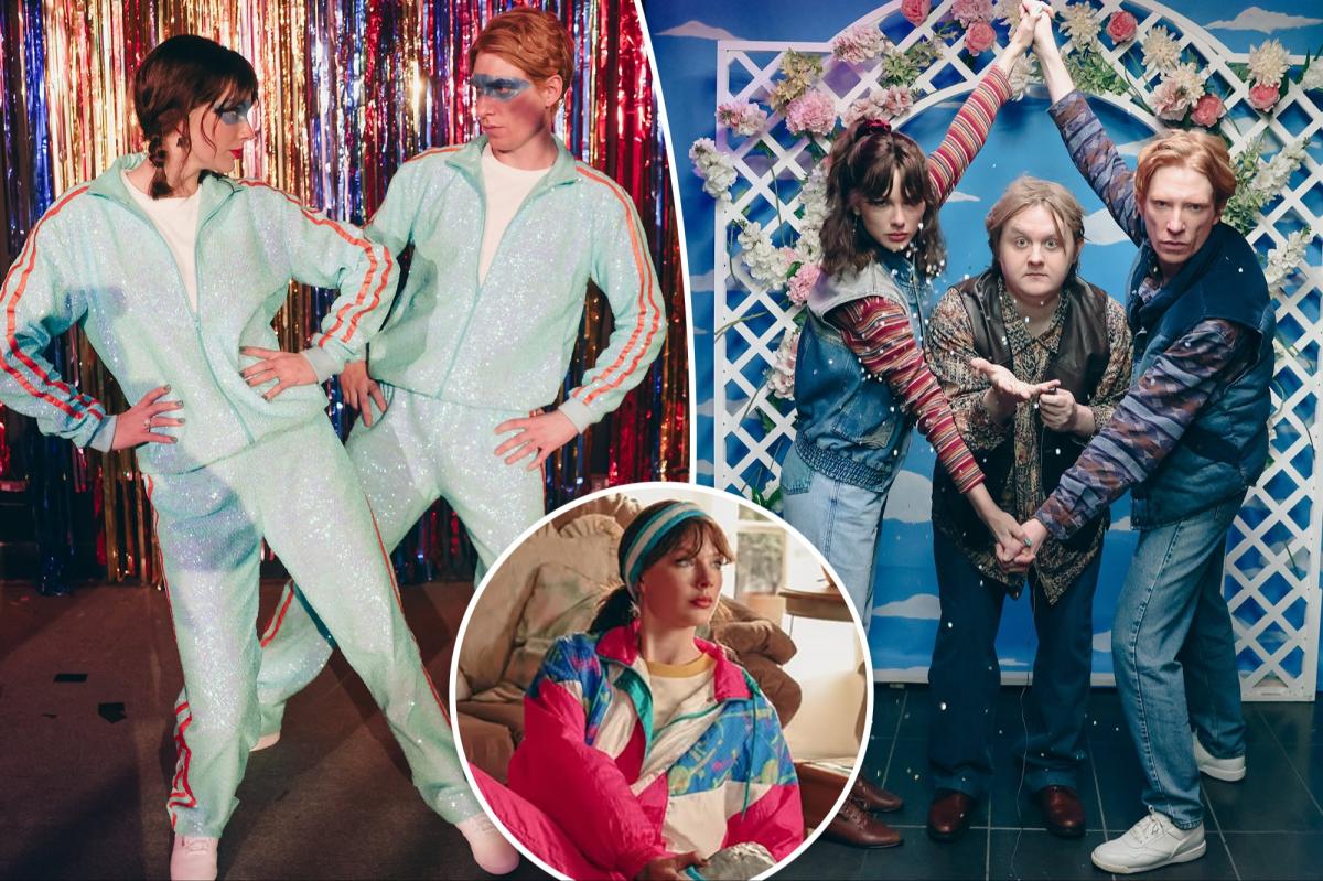 It all culminates in a provocative number in a dance competition between couples wearing tracksuits in the “Life of a Showgirl” color palette of mint green and orange.