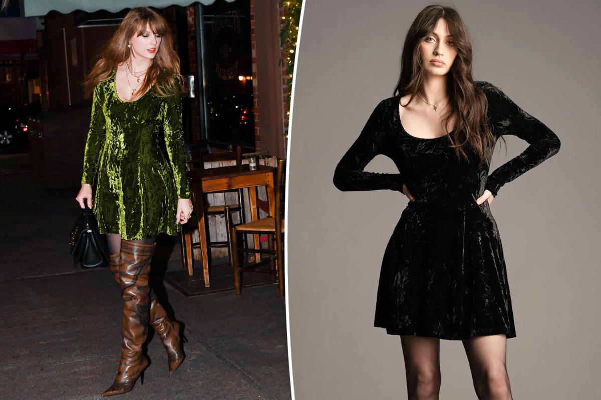 Little Lies co-founder Jade Robertson tells Page Six Style Swift wore the brand’s black crushed velvet Sweet Jane dress to the bash. The superstar owns the same green outfit and memorably styled it with snake-embellished thigh-high boots for a January 2024 outing in New York.
