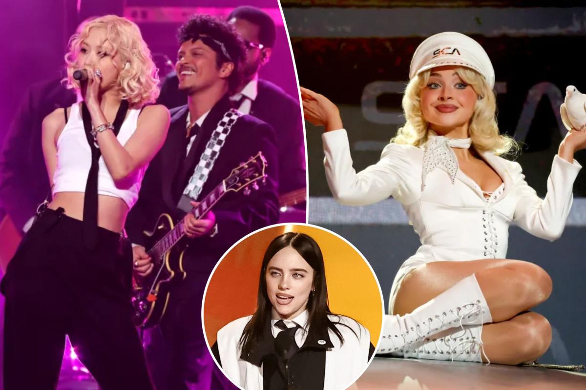 The Grammy Awards began with a rock performance of “APT.” From Rosé and Bruno Mars. Recording Academy Getty Images