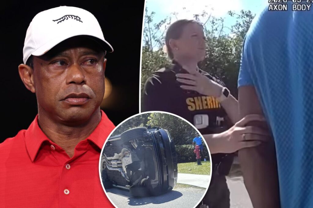 Martin County Sheriff John Budensiek said at a news conference that Woods, seen on body camera footage from the back of his patrol car, was “exhibiting signs of impairment” at the scene. Martin County Sheriff’s Office