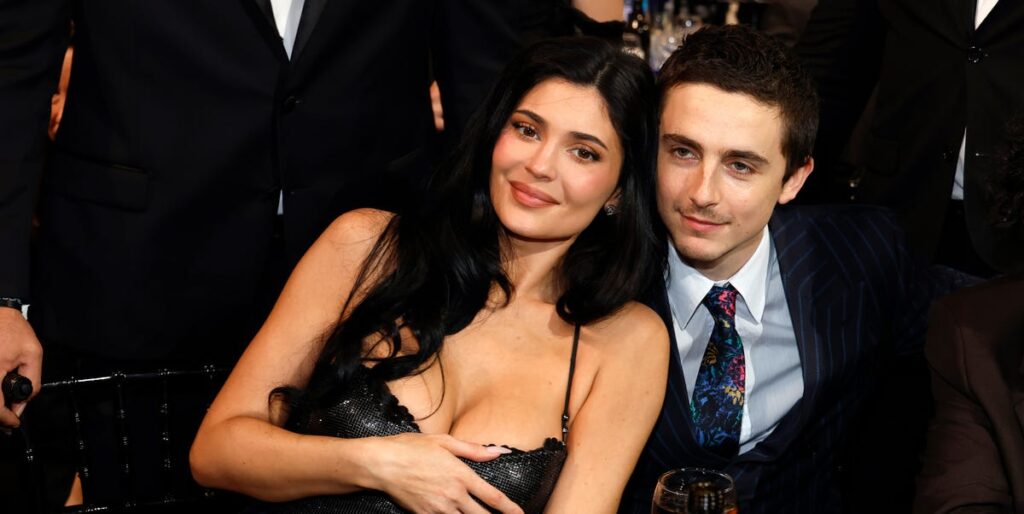 Timothée Chalamet and his film Marty Supreme received multiple nominations at tonight’s Critics Choice Awards, and while he didn’t appear on the red carpet, he wasn’t completely absent from the ceremony. Best Actor nominee Kylie and girlfriend Kylie Jenner appeared together during the show. Jenner wore a black dress and Chalamet wore a striped suit. They entered the stage holding hands.