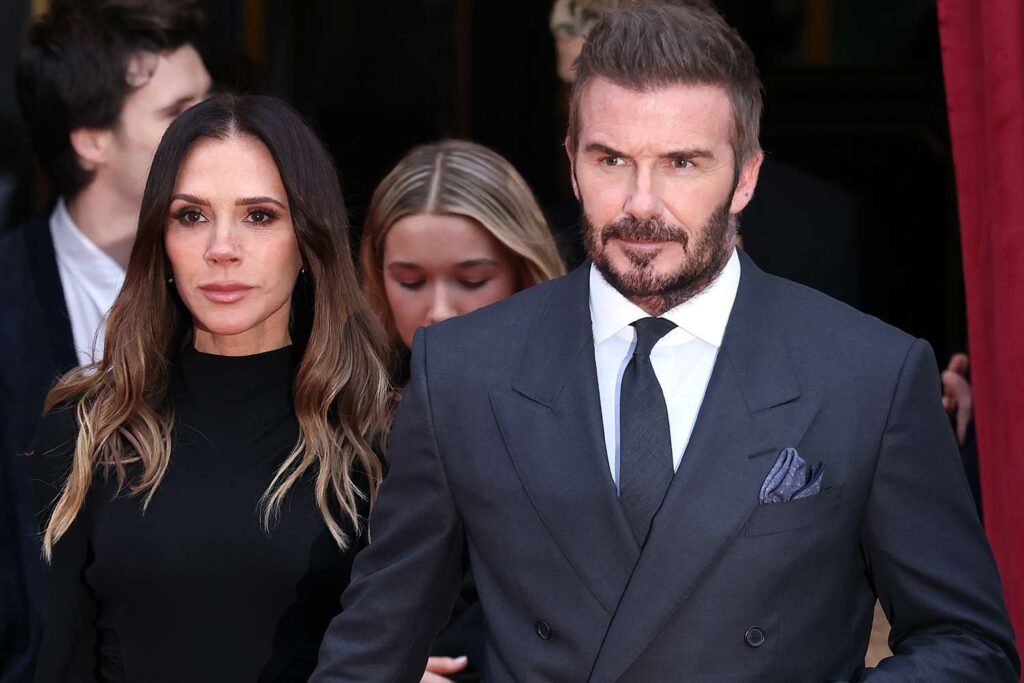 Victoria and David Beckham fashionably leave their hotel during Paris Fashion Week on Jan. 26 in France.