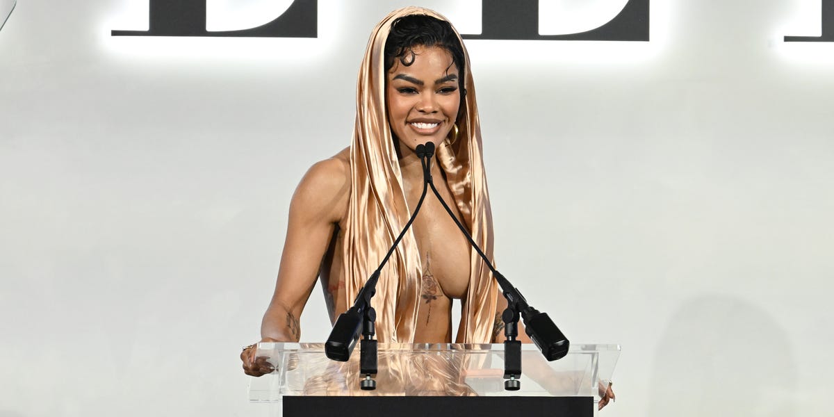 On Monday night, Teyana Taylor was honored at ELLE’s “2025 Women in Hollywood” event. After being introduced by Kerry Washington, Taylor took to the stage and spoke about sisterhood and the power of community. “I’ve been doing this for almost 20 years and I’ve gotten through it,” the singer and actress said, wearing a gold Balmain hooded dress. “But what I have continued to do for myself and for others is to show up. And most importantly, show up for the women in my life who have shaped me into the person I am today.”
