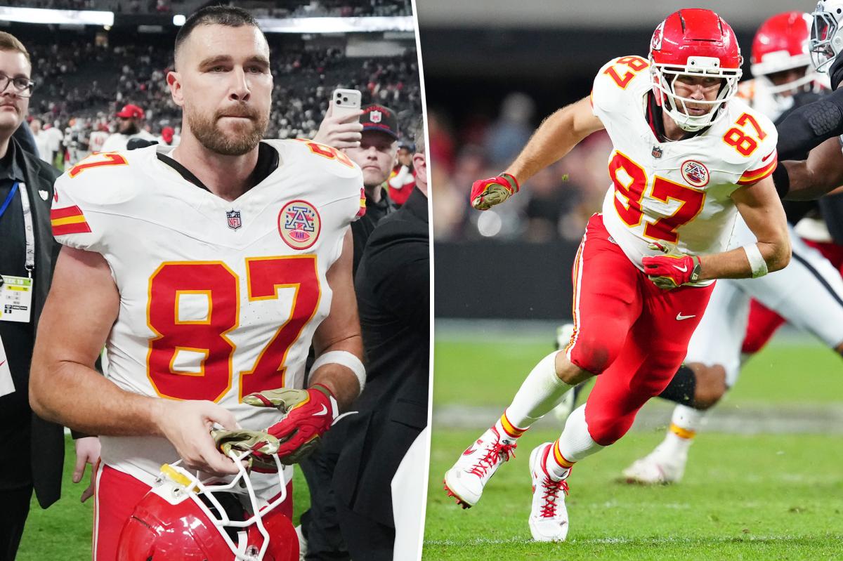 Kelsey’s fiancé, Taylor Swift, was absent from Kelsey’s final game of the season at Allegiant Stadium in Las Vegas.