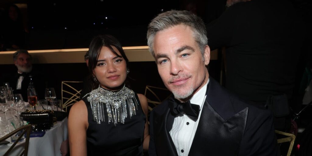 They coordinated black eveningwear for the occasion, with Pine donning a classic tuxedo and Wenger opting for a black gown with a jeweled silver collar. At the awards ceremony, Pine joined Ana de Armas on stage to present her with the award for Best Performance by a Female Actor in a Motion Picture or Drama.
