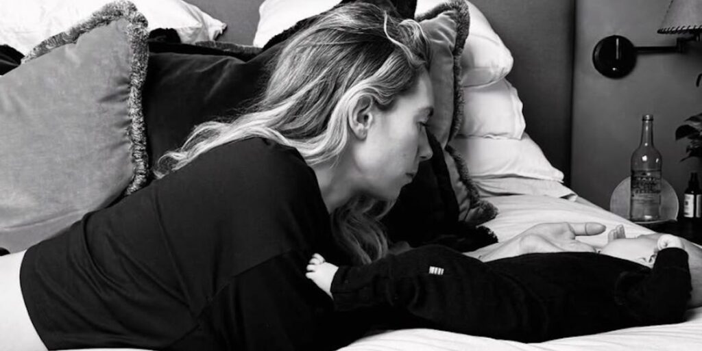 Rabil wrote, “Being a parent, I am learning to slow down and wake up at the same time. I am so grateful for everyone’s health, that I get up every day with mommy’s great love, and that we now have you in our lives. On your first cradle bar. So many stories and blessings. Maybe even a broken window. Balls are allowed in the house 🤍.”