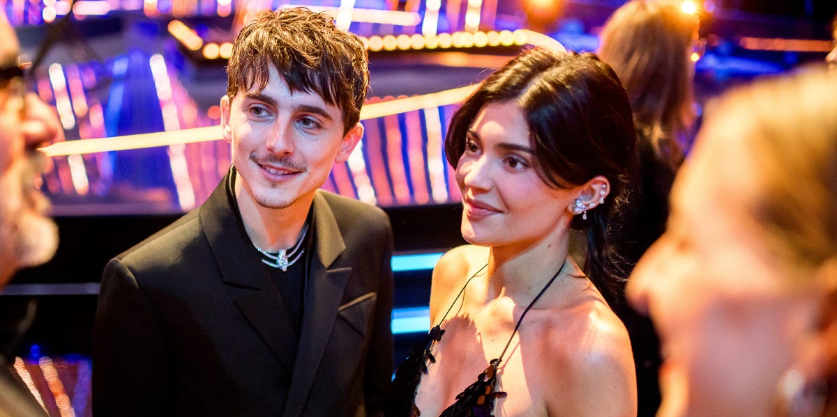 Timothée Chalamet gave a shoutout to Kylie Jenner in his rap collaboration with SDKID, and posed with her in a matching Chrome Hearts look on the red carpet this month. However, the actor was not seen in the photos from her family’s annual Christmas Eve party. It is unclear whether he attended.